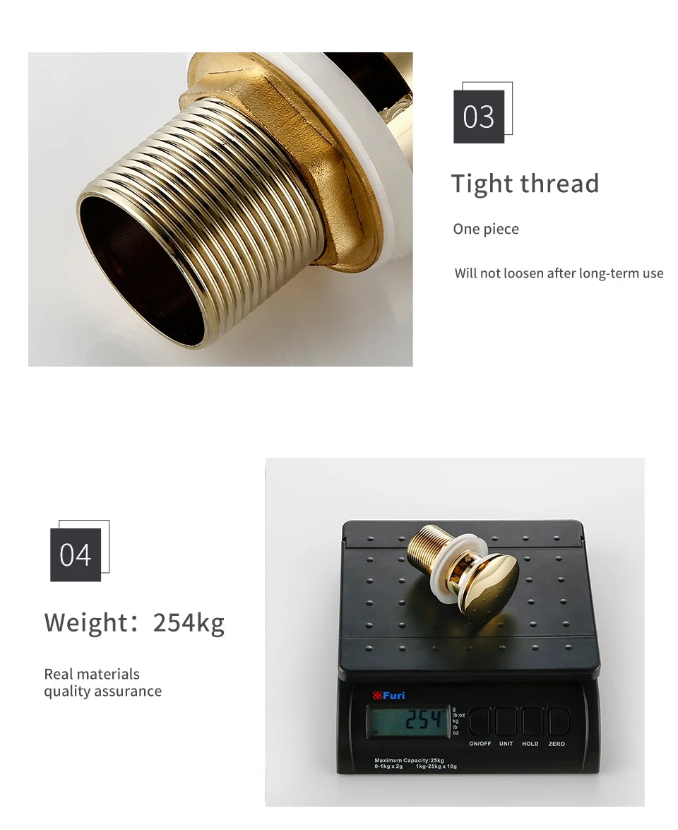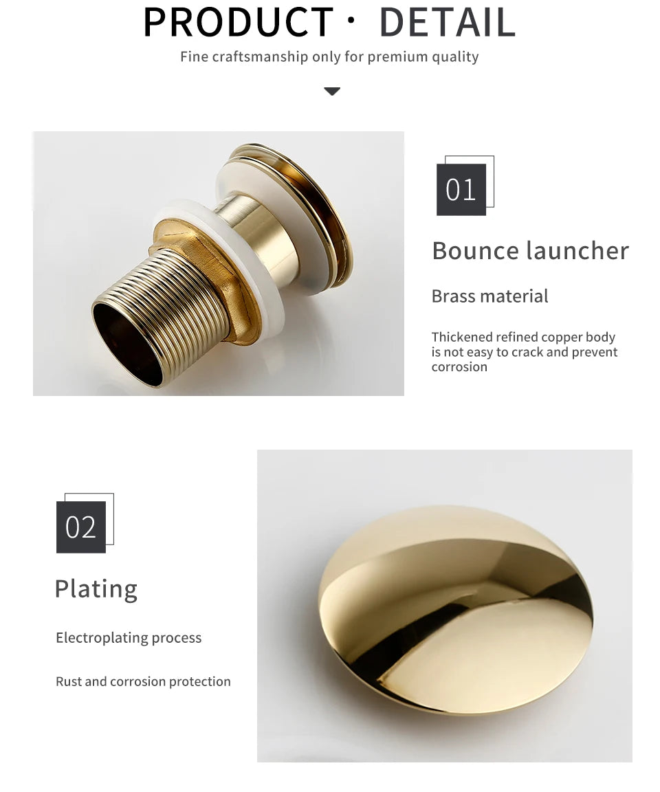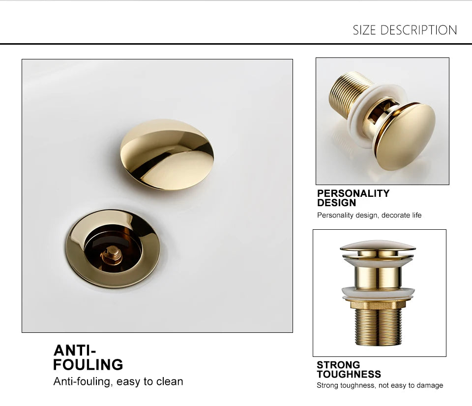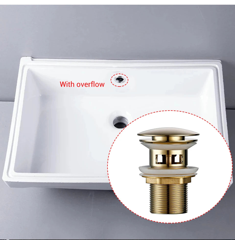 Pop Up Drain Button Bathroom Sink Plug Drainer Siphon Waste Stopper Wash Basin Faucet Accessory Washbasin Pipe Black Gold Rose
