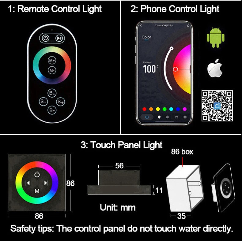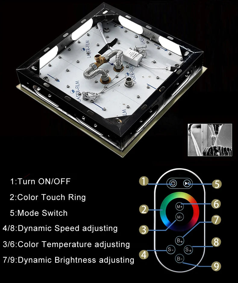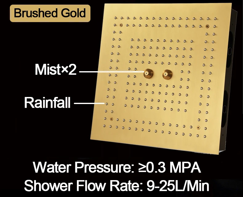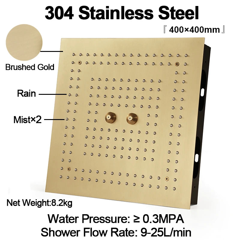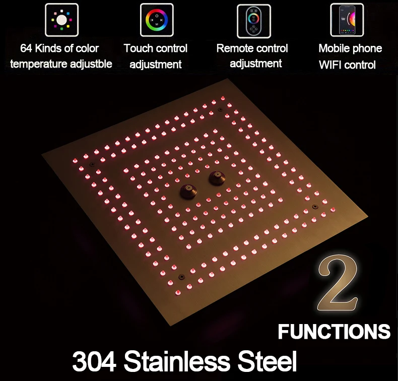 Qlonn 16 Inch Rain Shower Head Large Stainless Steel Bathroom Ceiling Black Showers Panel Luxury High Pressure LED Showerheads