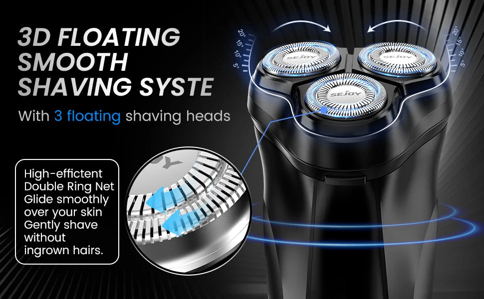 SEJOY Electric Razor for Men 3D Rotary Shaver Dry Wet Shaving Pop-Up Beard Trimmer Rechargeable Hair Cutting Machine