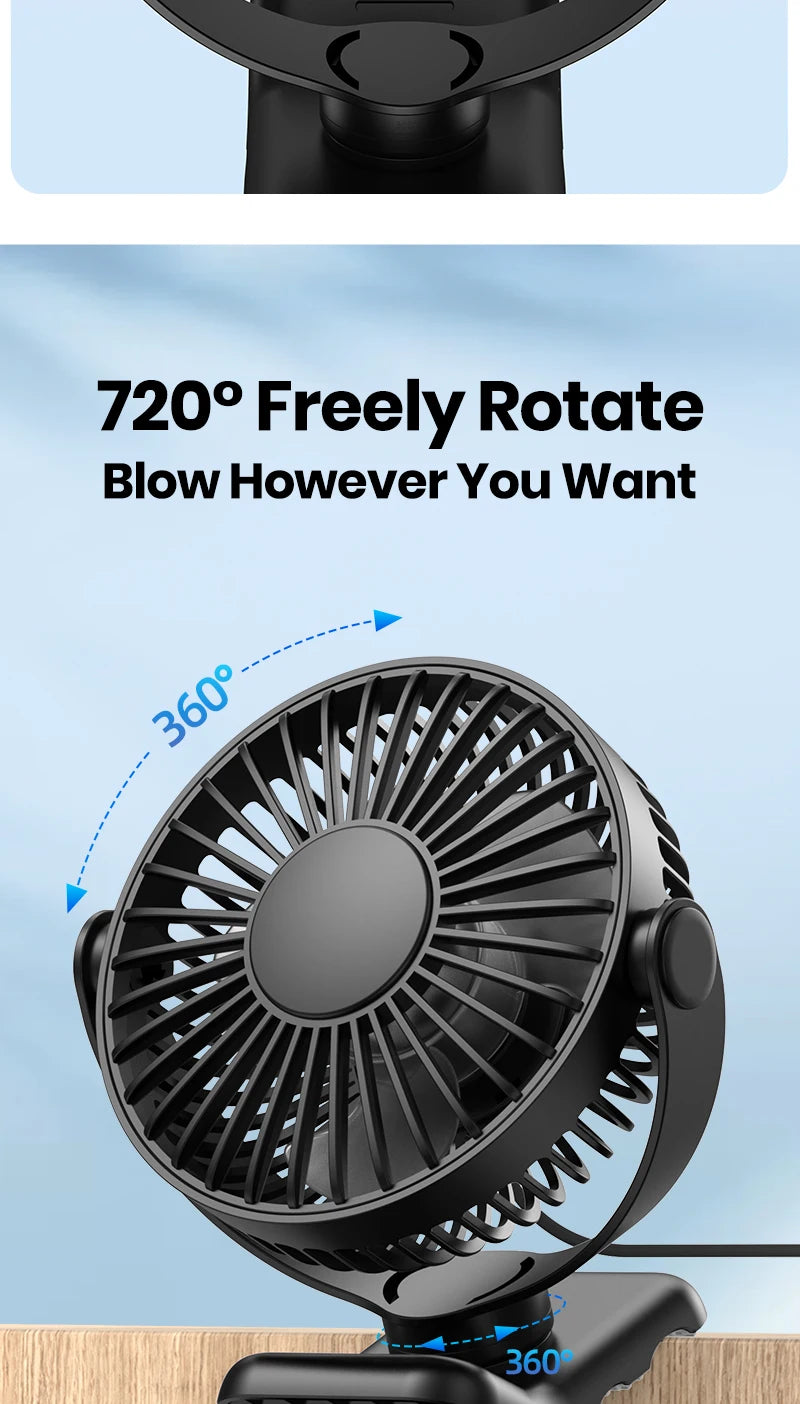 TOPK Mini Portable Clip on Fan,USB Desk Fan,3 Speeds Quiet Wind 720° Rotate Personal Electric Fan,Standing Fans for Room Home