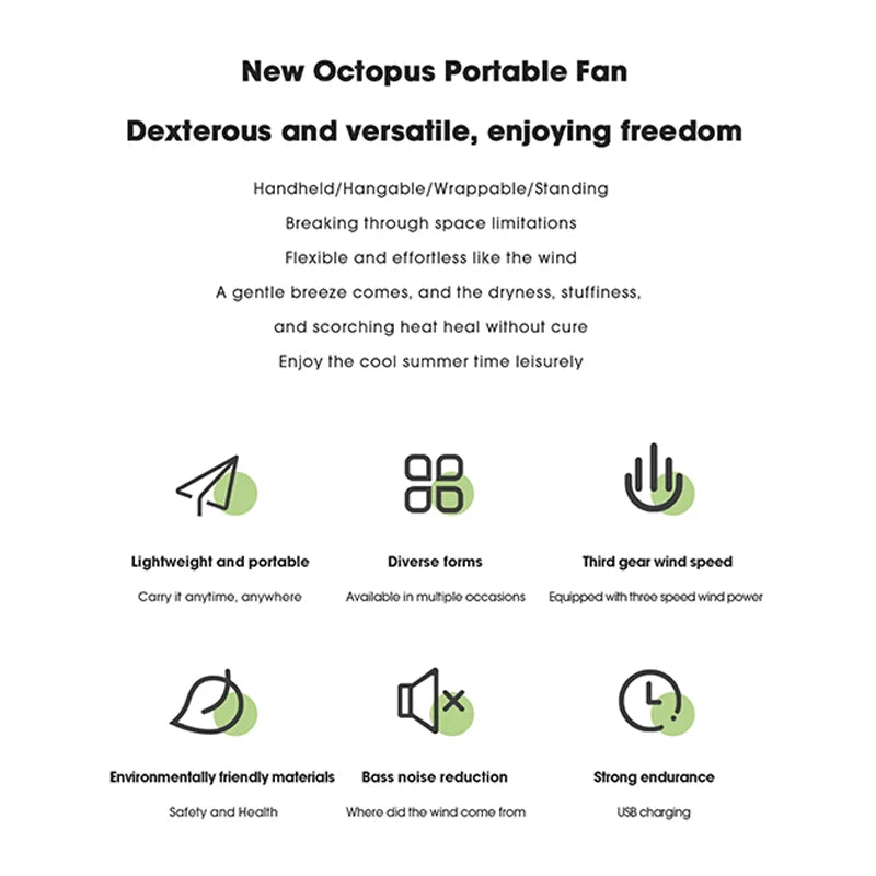 USB Rechargeable Octopus Multifunctional Mini Fan Fixable Small Fan Portable Desktop for Baby Stroller Bicycle with Soft Wind