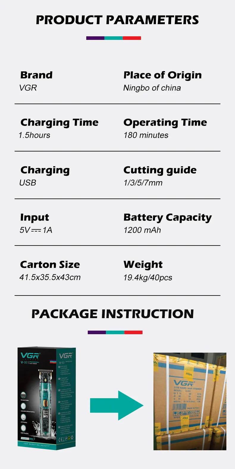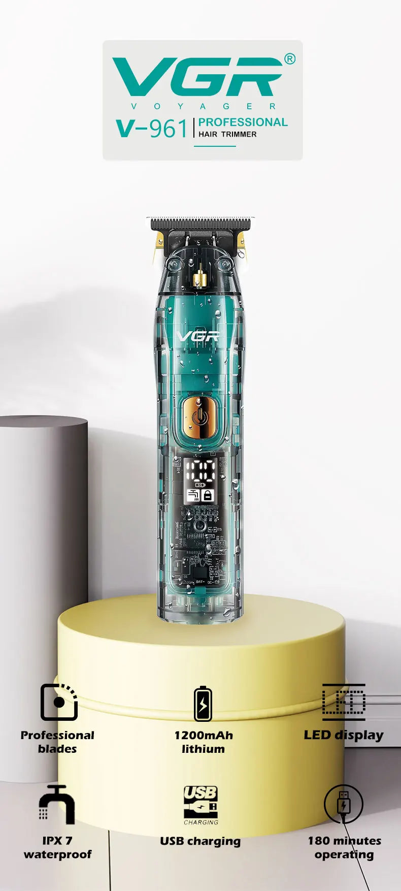 VGR Barber Hair Clipper Waterproof Hair Trimmer Beard Cordless Hair Cutting Machine T-Blade Haircut Zero Haircut Machine V-961
